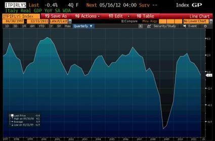 Overnight we got some good news on Italian industrial production. Well, get ready to scrap them as according to Italian Trade Union Confindustria, and validating the collapse as predicted by PMI indicators, Italy’s Q2 GDP is now expected to shrink more than 1% in Q2: the worst print since 2009, cementing the country’s “double dip”, and that real-time industrial output in April, now that LTRO has fizzled, is expected to fall 0.6%. See on www.zerohedge.com
